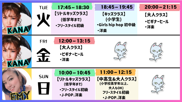 ⚫︎リトルキッズクラス、キッズクラス、中高生クラス